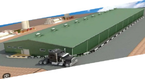 Земельный участок — 3,5 Га, огорожена, забетонирована. Площадь строения — 15 000 м2. (один этаж).